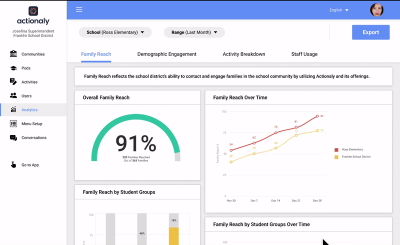 Design a way for school/district administrators to review engagement of how the platform is being used in the community