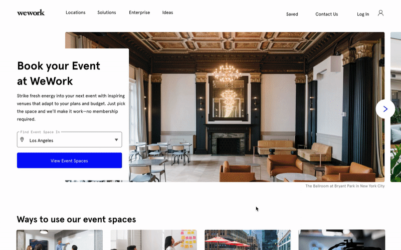 Redesign the WeWork Events website to help people learn about the new and improved Events product offering.